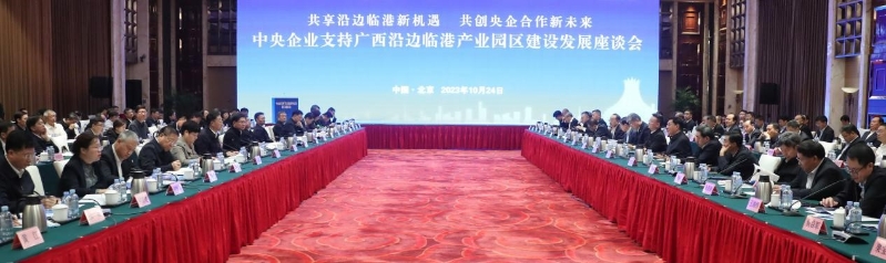 10月24日,以“共享新機遇 共創(chuàng)新未來”為主題的中央企業(yè)支持廣西經(jīng)濟發(fā)展座談會在北京舉行。國務(wù)院國資委黨委書記、主任張玉卓,廣西壯族自治區(qū)黨委書記、自治區(qū)人大常委會主任劉寧出席會議并講話。廣西壯族自治區(qū)黨委副書記、自治區(qū)主席藍天立介紹了廣西經(jīng)濟社會發(fā)展、國企改革和深化央地合作等情況。廣西壯族自治區(qū)政府黨組成員、國資委黨委書記秦如培主持廣西與相關(guān)中央企業(yè)的簽約儀式。國務(wù)院國資委黨委委員、副主任王宏志、茍坪,秘書長莊樹新,廣西壯族自治區(qū)黨委常委、自治區(qū)常務(wù)副主席蔡麗新,黨委常委、秘書長周異決及33家中央企業(yè)負責同志參加會議。集團黨委書記、董事長朱碧新參加會議并發(fā)言。